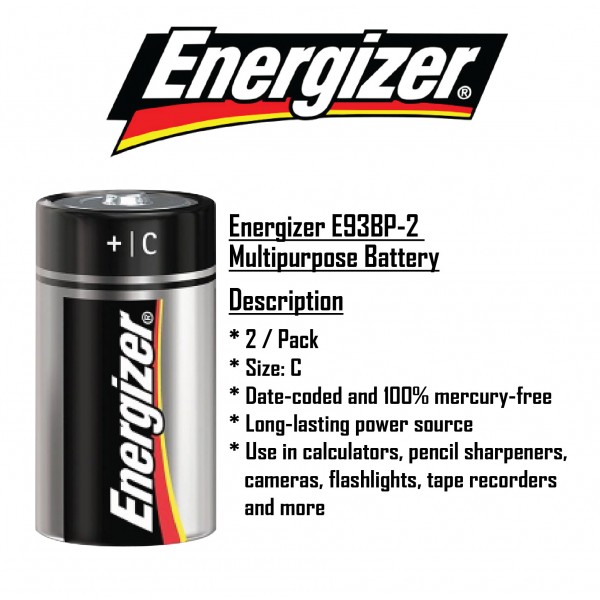 Energizer Battery Size: C (2pcs/pack)